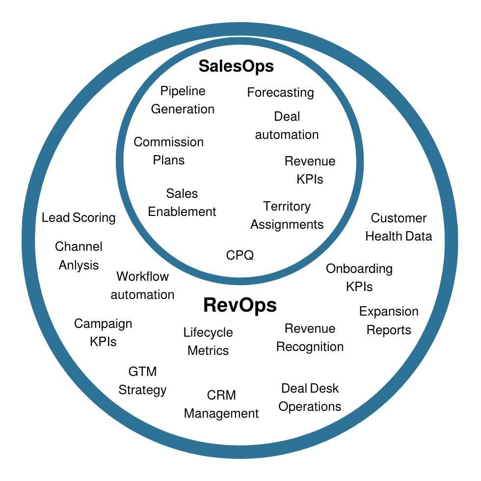 Many people confuse RevOps with SalesOps, but the scope is very different: